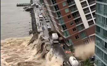 Flooding causes complete collapse of riverside buildings!. Read More