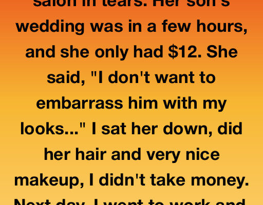 “My son’s wedding is in a few hours,” she whispered. “I don’t want to embarrass him. I have twelve dollars.”