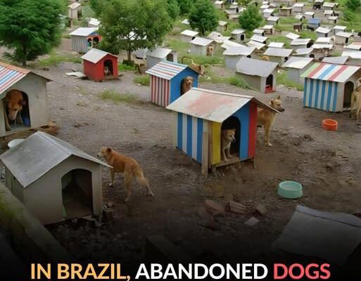 In Brazil, a group of extraordinary volunteers turned compassion into architecture — building an entire village for homeless dogs. Each pup has its own tiny, colorful house surrounded by open fields where they can play, rest, and rediscover safety.