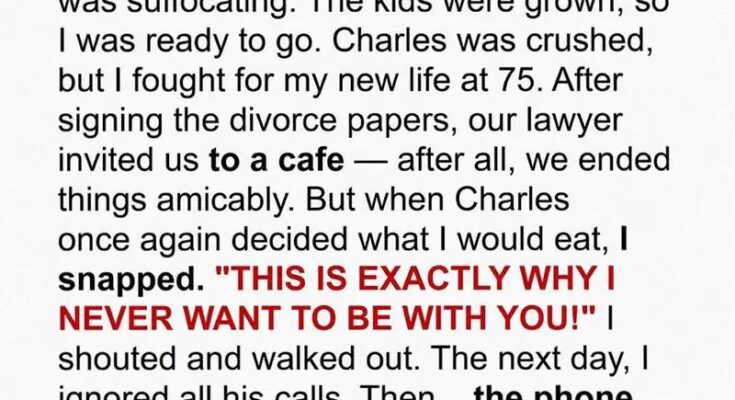 We signed the papers in the morning—fifty years dissolved in a few strokes of a pen—and our lawyer suggested coffee to mark the end of something we’d once believed would never end. It was civil, almost gentle, until the menus arrived and Charles, out of pure habit, told the waiter what I’d have.